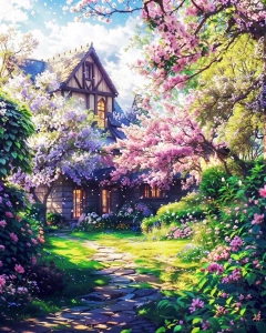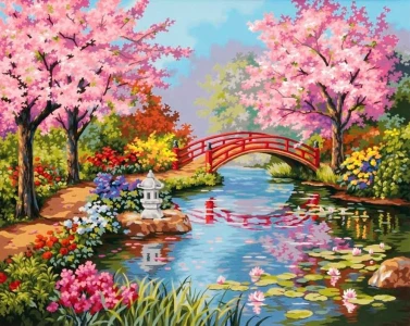 Мост в цветущем саду