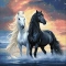 Пара лошадей в море