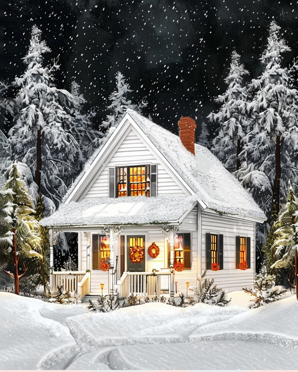 Домик в снежном лесу