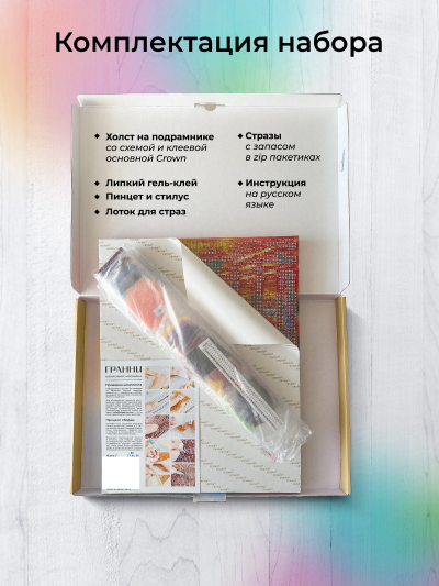 Холст покрыт схемой — это символы или цвета, напечатанные на клеевом слое. Каждому символу соответствует номер страза. В инструкции к набору (обычно на полях холста или в отдельной бумаге) есть расшифровка: какой номер каким цветом выкладывать. Также для удобства пакетики со стразами уже пронумерованы. Начинать выкладку удобнее с одного угла (чаще с правого нижнего или верхнего), чтобы случайно не сдвинуть рукой уже готовые ряды.