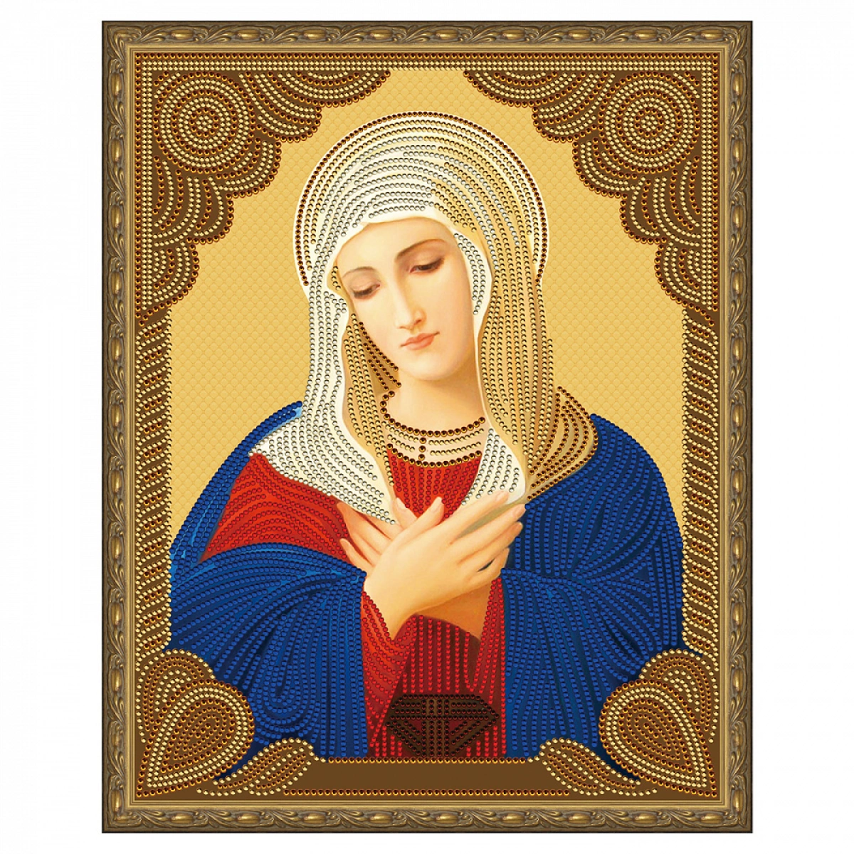 После того как все символы закрыты кристаллами, картину нужно завершить. Чтобы стразы держались надежно и не отваливались со временем, многие мастера рекомендуют пройтись по готовой мозаике скалкой или стеклом — это прижмет все неровно стоящие элементы. Затем, чтобы защитить работу от пыли и влаги, холст можно поместить в рамку со стеклом или, если стекло не предусмотрено, покрыть слоем акрилового лака (он придаст дополнительный блеск и зафиксирует стразы).